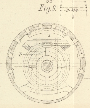 und ist durch die zweitheilige Scheibe P derart umfaßt