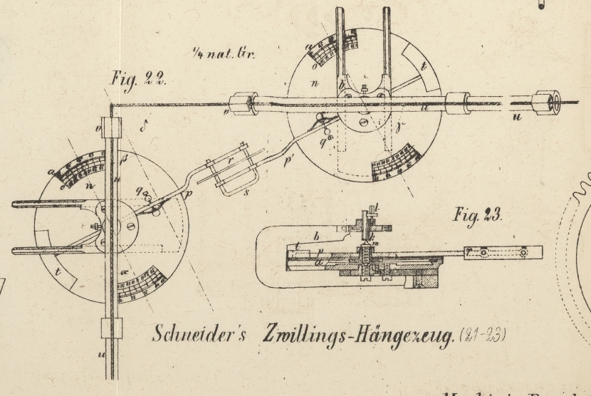 | Titel: | Zwillings-Hängezeug für Grubenaufnahmen; Patent R. Schneider und Wilhelm Kraft. |
