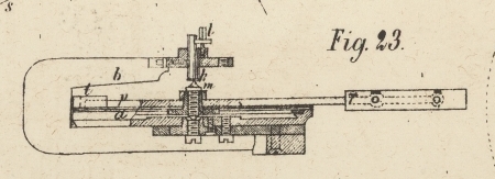 ist die Verbindungsschiene p auf der Spindel m drehbar aufgesteckt, welche mittels der Stellschraube