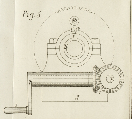 aufgesetzten Handgriff, bei größern dagegen durch ein Vorgelege q, r, p und o mittels der