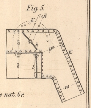 Die Drosselklappe k ist durch den Hebel k' beweglich, welcher in Knaggen, bezieh. Einschnitte
