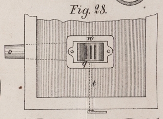 Die Oeffnung v des Windkastens w, die durch einen Schieber gewöhnlich