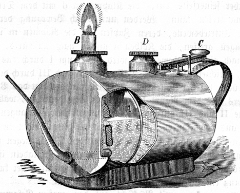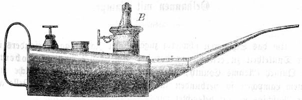 gefüllt und auf derselben getrennt ein Lämpchen B aufgesetzt, das man mit Ligroine oder