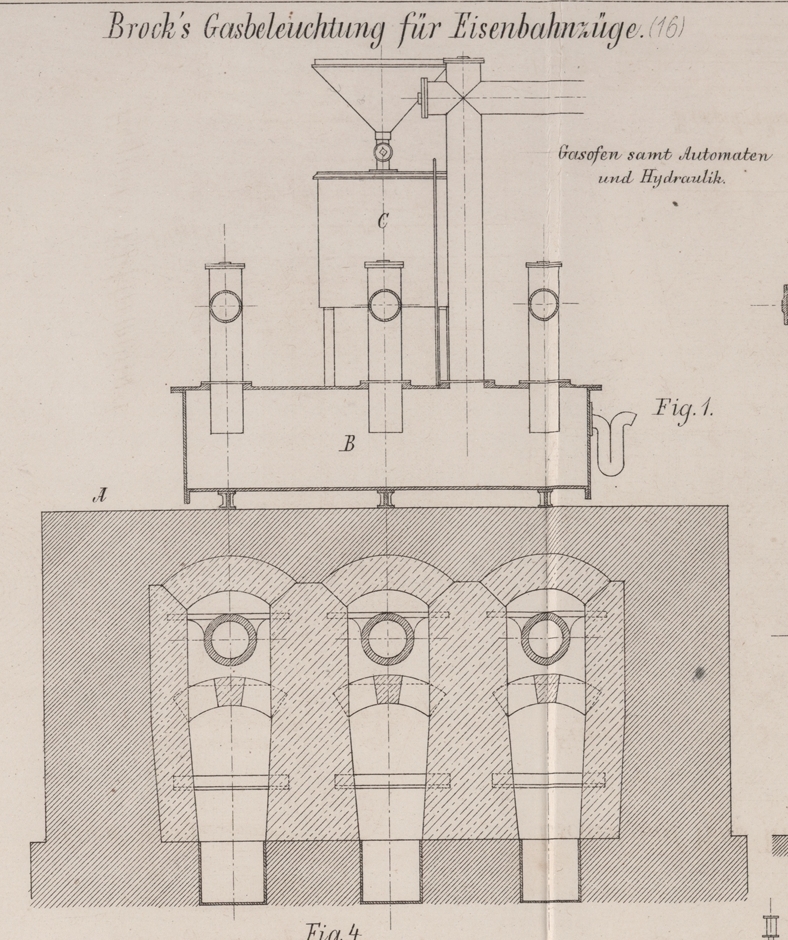 | Titel: | Ueber Beleuchtung der Eisenbahnwaggons mit Leuchtgas, System Brock. |