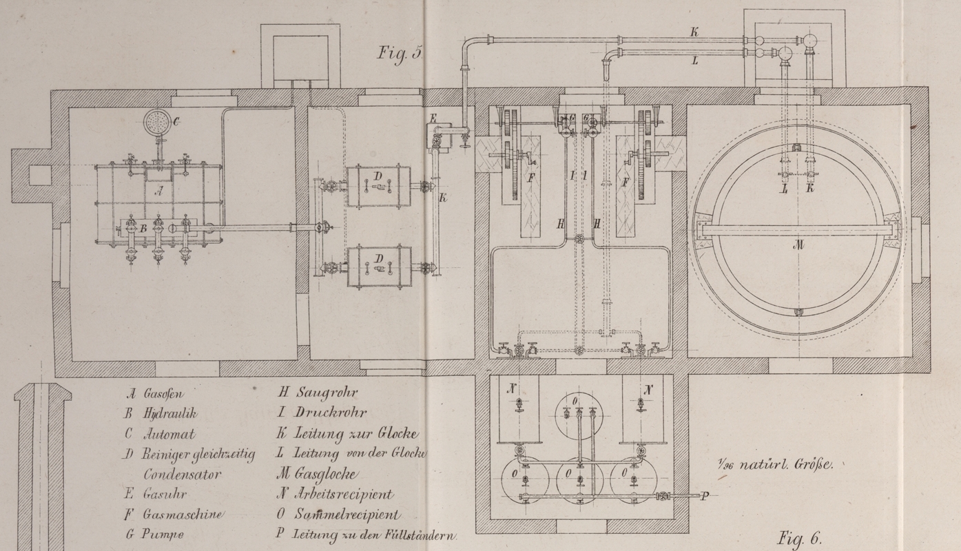 Röhrenverbindung zwischen Ofen, Reinigern, Gasuhr,