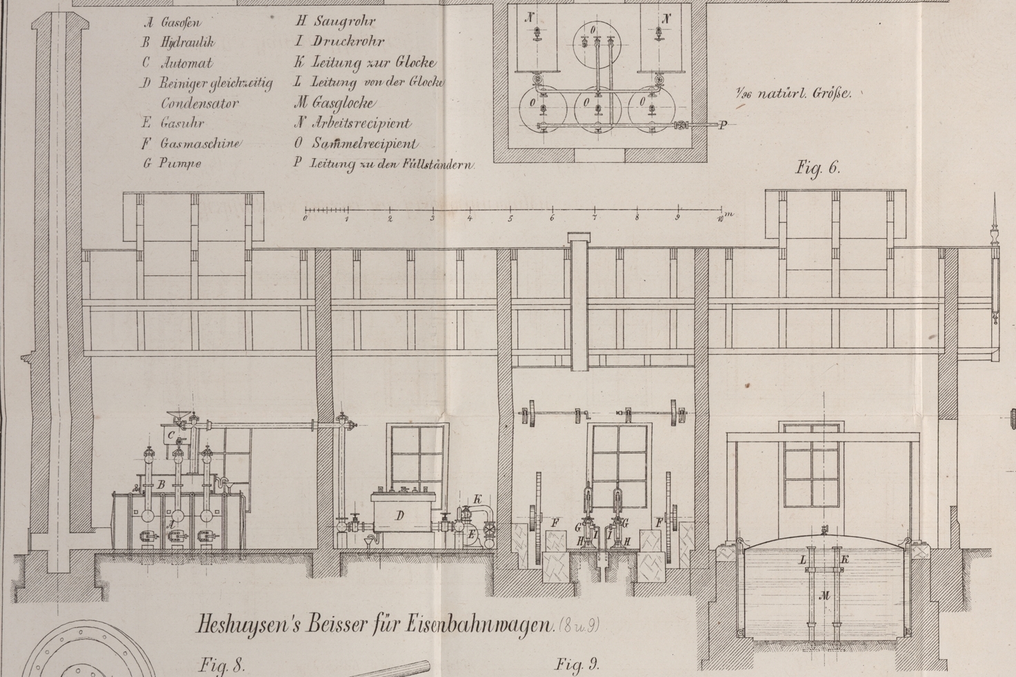 Waggons, die Anlagen zur Erzeugung, Compression und Füllung des