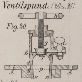Ventilsitz ist seitlich das Hähnchen c angebracht, welches zum Entlassen der Kohlensäure dient,