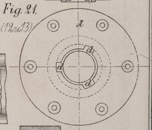 getrennten Theilen A und B; der erstere A hat die Form eines Flanschenringes von 150mm