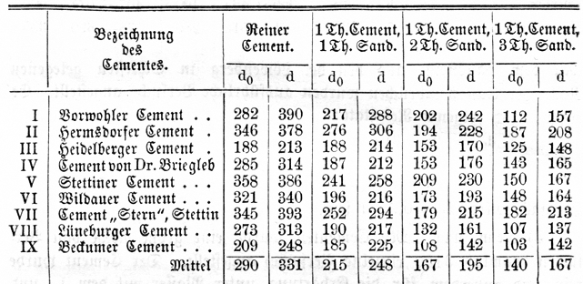 angestellt. Der Cement wurde rein und außerdem für die Erhärtung
