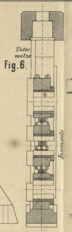 ist, die Oberwalze also frei in den Lagern an den Schrauben hängt und ihre Stellung