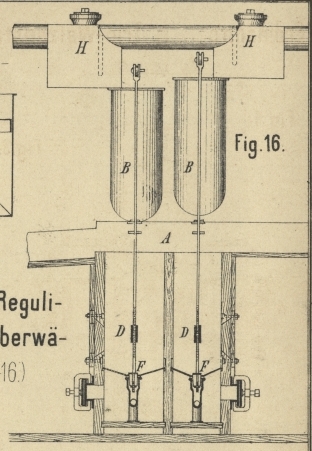 Um schlieſslich die Zufluſswassermenge zu reguliren, ist über B noch ein Wassermeſsapparat H