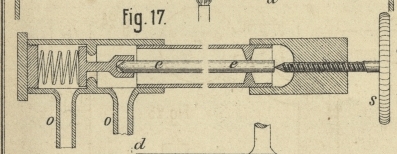 Zwischen diesen befindet sich ein Ventil, welches, durch eine Spiralfeder vom Ende