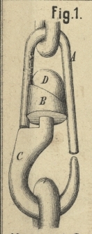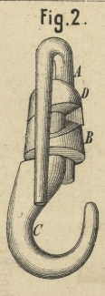 2 Taf. 30 zeigen, aus zwei Theilen, einem ungleichschenkligen Bügel A mit Auge B und dem Haken