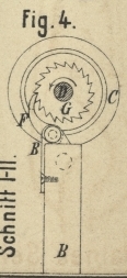 Sperrrad G und die Klinke F, welche am Gestell B angebracht ist. Es