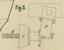 G ein, so daſs die Rolle C in bekannter Weise durch die Reibung des Garnes fortbewegt werden kann.