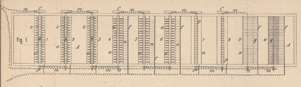 geneigte Tafel A durch die einzelnen Tröge zwischen den