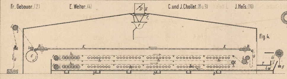 Breitstreckung ebenfalls nur durch Luftwärme das Trocknen vollendet. Das Gewebe G (Fig. 4 Taf.