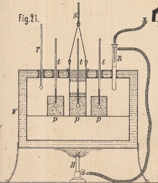 21 Taf. 11 abgebildet. In einem doppelten Wärmekasten W, dessen Wände mit Wasser ausgefüllt sind, werden die