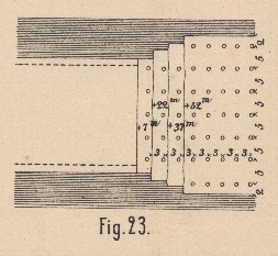 Durchmesser ausgebohrt und dieselben in Reihen angeordnet (vgl. Fig. 22 und