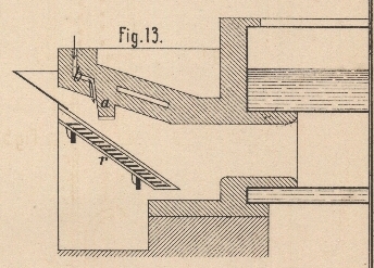 angebrachten, durch ein flaches feuerfestes Gewölbe gebildeten Zunge a, vor welcher ein Luftkanal b einmündet. Durch diese Einrichtung soll der Verbrennungsprozeſs in