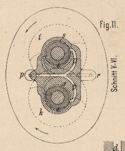 halbmondförmigem Querschnitte; x bedeutet das Saug-,