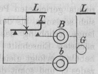 Batterie B in demselben Stromkreise L, welcher zwischen Achse und Arbeitscontact eines