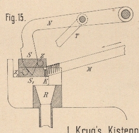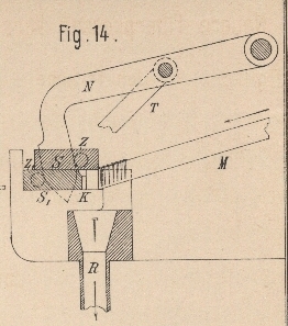 der Hebel N wieder aufwärts, so daſs nun die Federn F das Zusammengehen $er Schieber in die Stellung Fig.