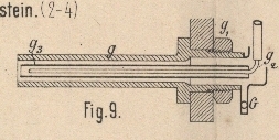 lassen. In das aufwärts gebogene Ende des Rohres g2 steckt man das Thermometer. Ferner läſst sich hier