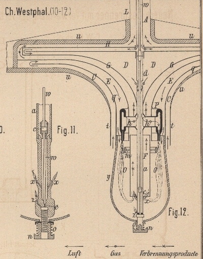 In das untere Ende a des Rohres d ist der Zünd- und Lockbrenner (vgl. Fig. 11)