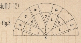 g offen ist und die Kammern o enthält. Hierüber liegt der Kegel e mit den