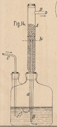 bezieh. Glasperlen enthält, nach unten in das angeschmolzene engere Rohr a über; innerhalb der beiden ist das Trichterrohr B, welches oben bis zu etwa ⅔ der Perlenfüllung reicht.