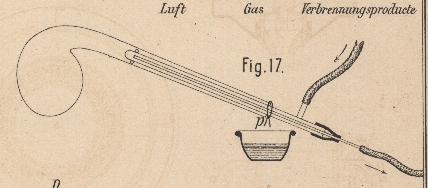 Um die Röhret füllen zu können, wird das Trichterrohr (eine Glasröhre von 2 bis 4mm lichter Weite, je nach der Oeffnung von A) ein gutes Stück länger gemacht, als man es später