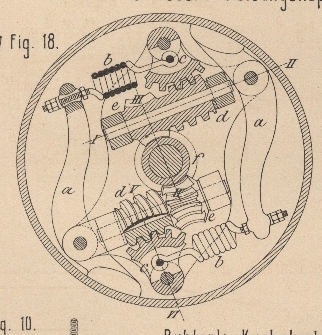 Wie die Bewegung von f nach a übertragen wird, ist aus der Zeichnung leicht ersichtlich. Die