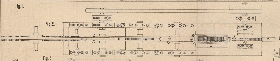 Lager der Bänder zu bilden. Die Bänder gehen mittels der Scheiben h7 von einem Cylinder