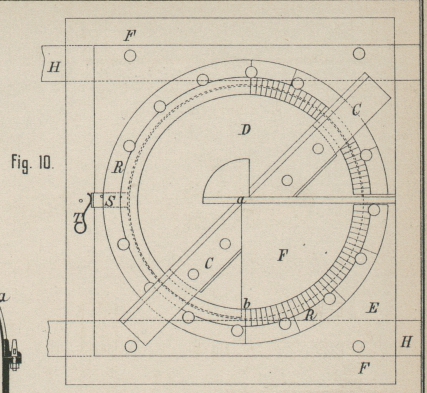 mehrere Zähne eines Riegels S durch die Feder T gedrückt werden. Das Ablesen der Gradeintheilung