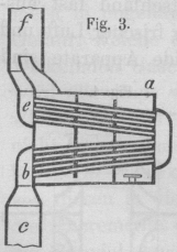 ziehen, hierbei eine starke Erhitzung durch die den Kasten a durchstreichenden Feuergase erfahren und schlieſslich durch das Rohr f, welches mit einer Wind ablenkenden Kappe bekrönt