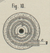Form von steilen Schraubengängen besitzen. Das durch ein Rohr o oben in den Deckel b