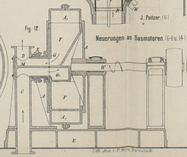 12 und 13 Taf. 10 in zwei Durchschnitten dargestellten Maschine liegen das Saug-