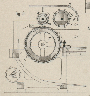 hindert, Der Betrieb der Zuführcylinder, welcher von der Trommel T aus durch eine doppelte Uebersetzung erfolgt, ist so anzuordnen, daſs