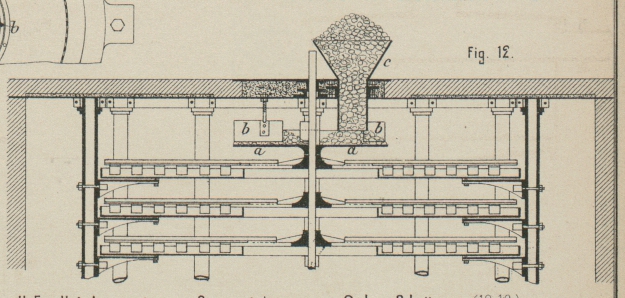 vertheilt, je nach der Anzahl der Abstreichmesser, auf den ersten Ofenteller fällt,