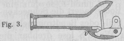 einem als Haken wirksamen Winkelhebel und einem Vorstecker v, welcher durch sein Eigengewicht (die Skizzen sind lauter Grundrisse)