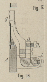 13 und 16) anschraubt und kann derselbe in seiner Höhenlage durch die Schraube