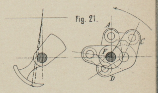Durch die Form der Curvennuth F F1 findet bei der Uebertragung der Drehung von der An