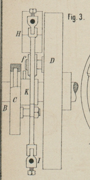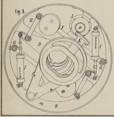 Achse desselben sitzt ein Flügelrad, das von einem mit Oel gefüllten Gehäuse J umschlossen ist. Eine Verstellung des Excenters um