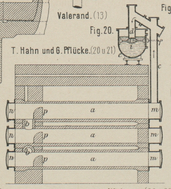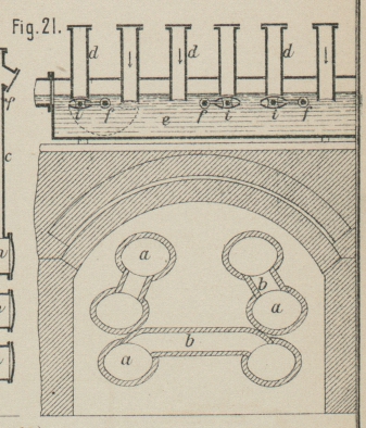 paarweise durch Chamotterohre b (Fig. 20 und 21 Taf. 30) in