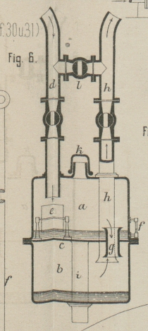 gelangt. Bei gröſserer Hitze werden die Hebel so bewegt, daſs das Ventil h die Oeffnung i
