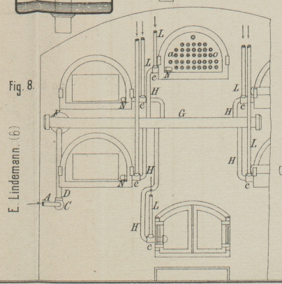 Sind die Oefen einmal im Gange, so wird nur der oberen Kammer Brennmaterial