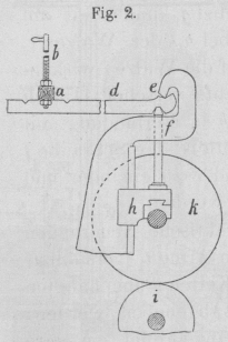 Drehpunkte e bedingte groſse Hub der Stange b sichert die nöthige Empfindlichkeit der