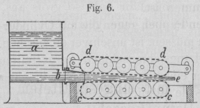 in denselben durch einen Kanal b an der Bütte a der Stoff, um am Ende nach der stattgefundenen