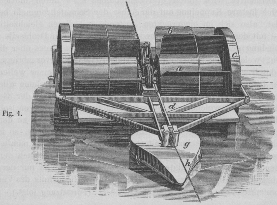 In einem Rahmen, welcher durch wasserdichte Trommeln a (Textfig. 1 und 2) schwimmend erhalten wird, sind auf letzteren